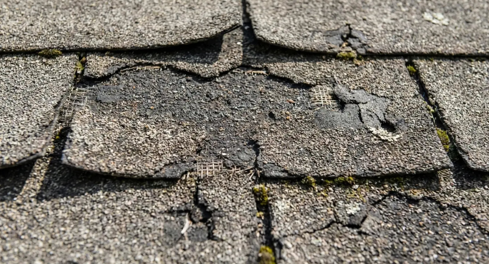 Shingle condition: Look for curling edges, missing granules (shingles that look darker or have shiny spots where granules have worn away), cracked or broken shingles, or shingles that are cupping or warping.