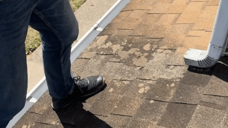 - Granules collecting in the gutter or at the downspouts
